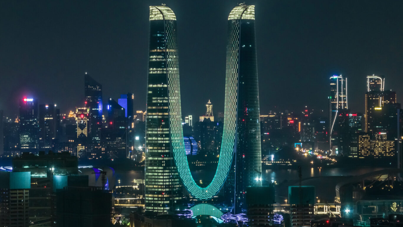 双子塔互相连接,包含办公、酒店和高端住宅,是钱江世纪城的入口。占地九平方英里的钱江世纪城是为2023年亚运会打造的多功能新兴开发区。双子塔的拱形连桥让人联想到中国传统园林景观中的月洞门,它不仅能将河岸的美景尽收眼底,还沿着倾斜的中轴线打造了一条人行步道。贯穿整个场地的绿化和公共设施将公共空间和当地社区有机联系起来。