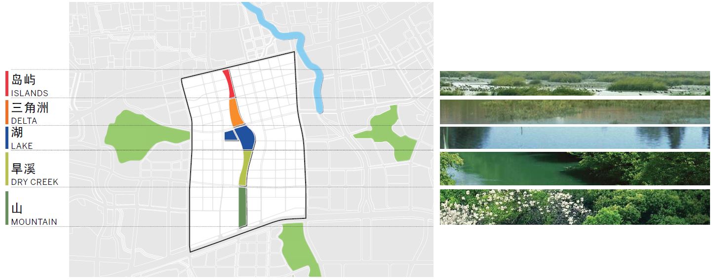 五个风格迥异的景观区 © SOM